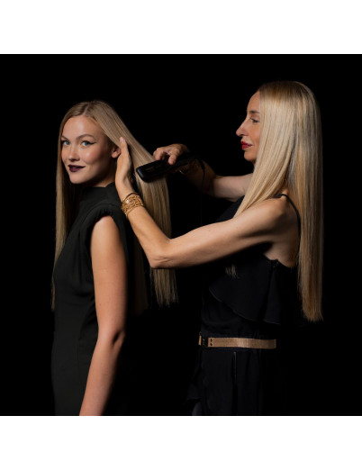 - Contador de Pasadas: Esta innovadora característica permite fijar y seguir el número exacto de pasadas necesarias para cada tratamiento capilar. El contador emite una señal sonora al alcanzar el número de pasadas programadas, optimizando el proceso y evitando el uso de calor innecesario, lo que protege aún más el cabello.