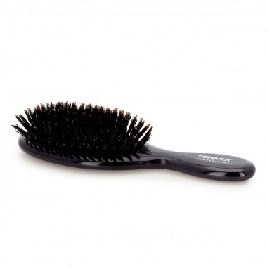 Pule el cabello con el cepillo de fibras de jabalí optimizado para dar brillo y textura al cabello. Si prefieres moldearlo, utiliza el cepillo profesional Black junto al secador a potencia media para una melena pulida.