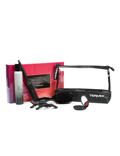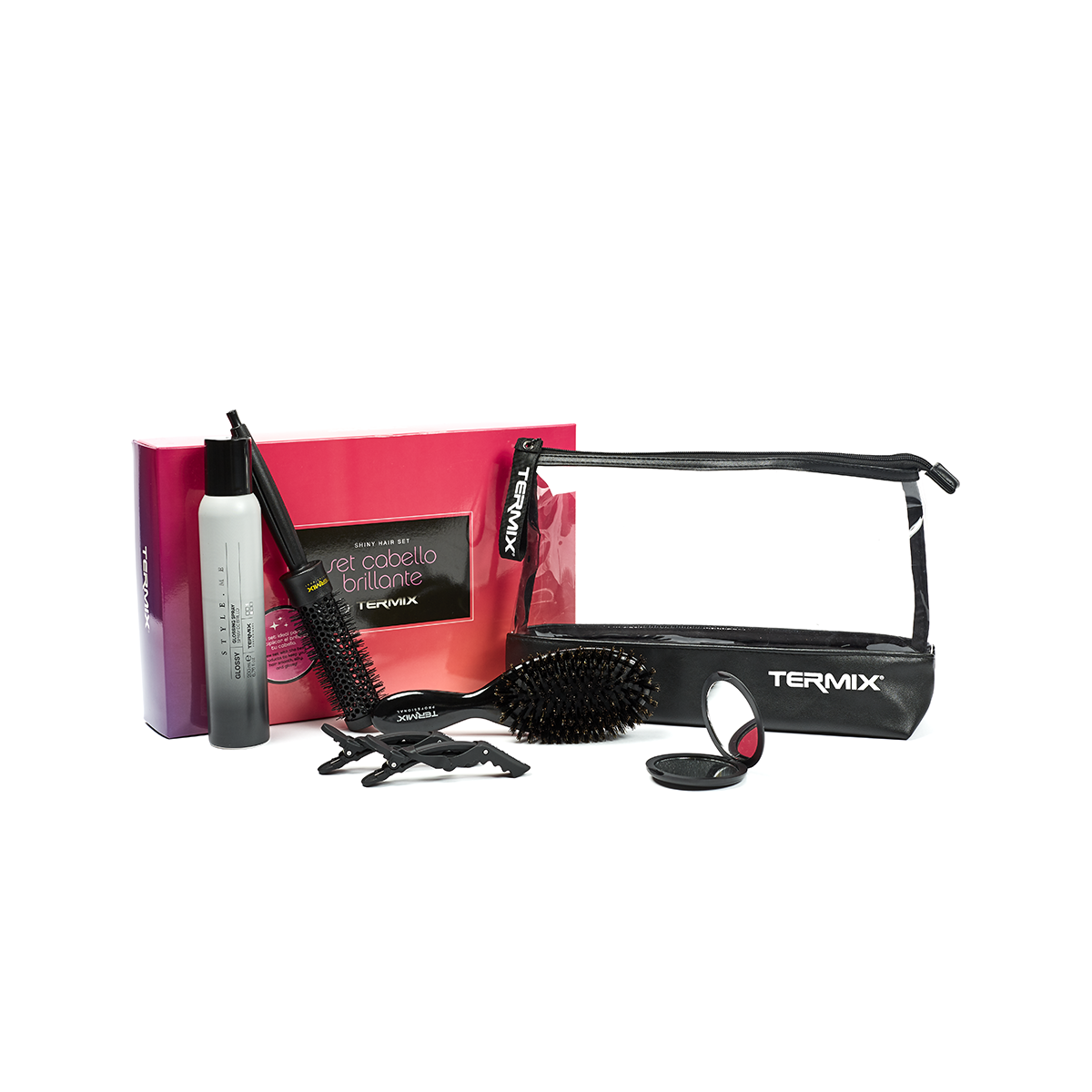Moldea el cabello con el cepillo Profesional Black y marca las ondas allí donde desees. Sella el moldeado y potencia el brillo del cabello rociando un poco de spray de brillo Glossy en el cabello.