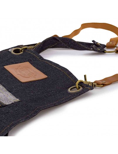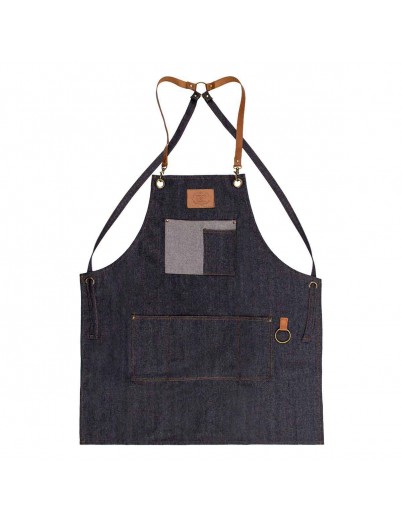 Compuesto por un material muy resistente en denim oscuro y unas sisas de cuero marrón, se trata de un elemento indispensable para realizar los cortes y arreglos de barbería aportando ese toque Old School.