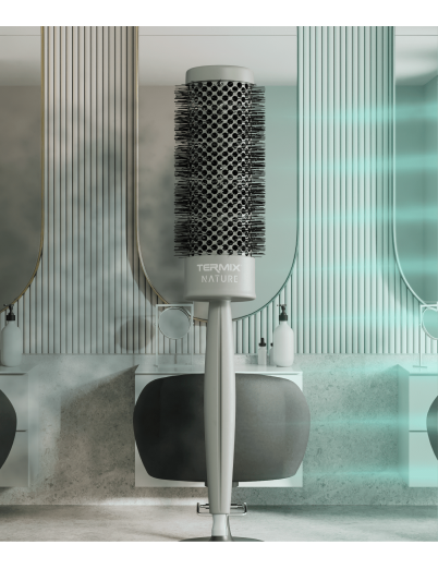 Con la gama de cepillos Nature de Termix Profesional conseguirás un aire puro, gracias a su tecnología natural de materiales que lleva incorporada.