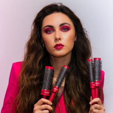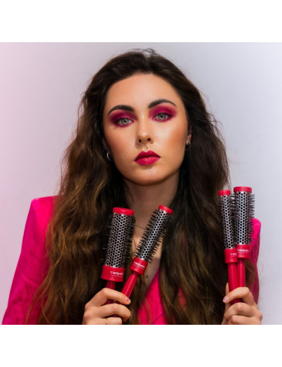 Diseñado con una fibra altamente resistente al calor y con la mayor capacidad de recuperación a su rigidez inicial. La colocación de las fibras de manera perpendicular también permite una mejor penetración del cabello entre las mismas y un mejor agarre.