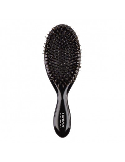 Comfortable cushion-base hairbrush with special blend of nylon bristles and 100% boar bristles for superior styling and daily care on dry hair with extensions.