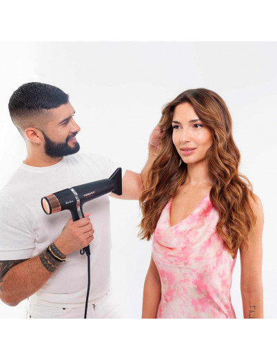 - Anti-frizz ionic technology: Transmits negative ions to neutralize the positive ions contained in the hair, resulting in cuticle closure, elimination and reduction of frizz. Achieving a much smoother, smoother and shinier result.